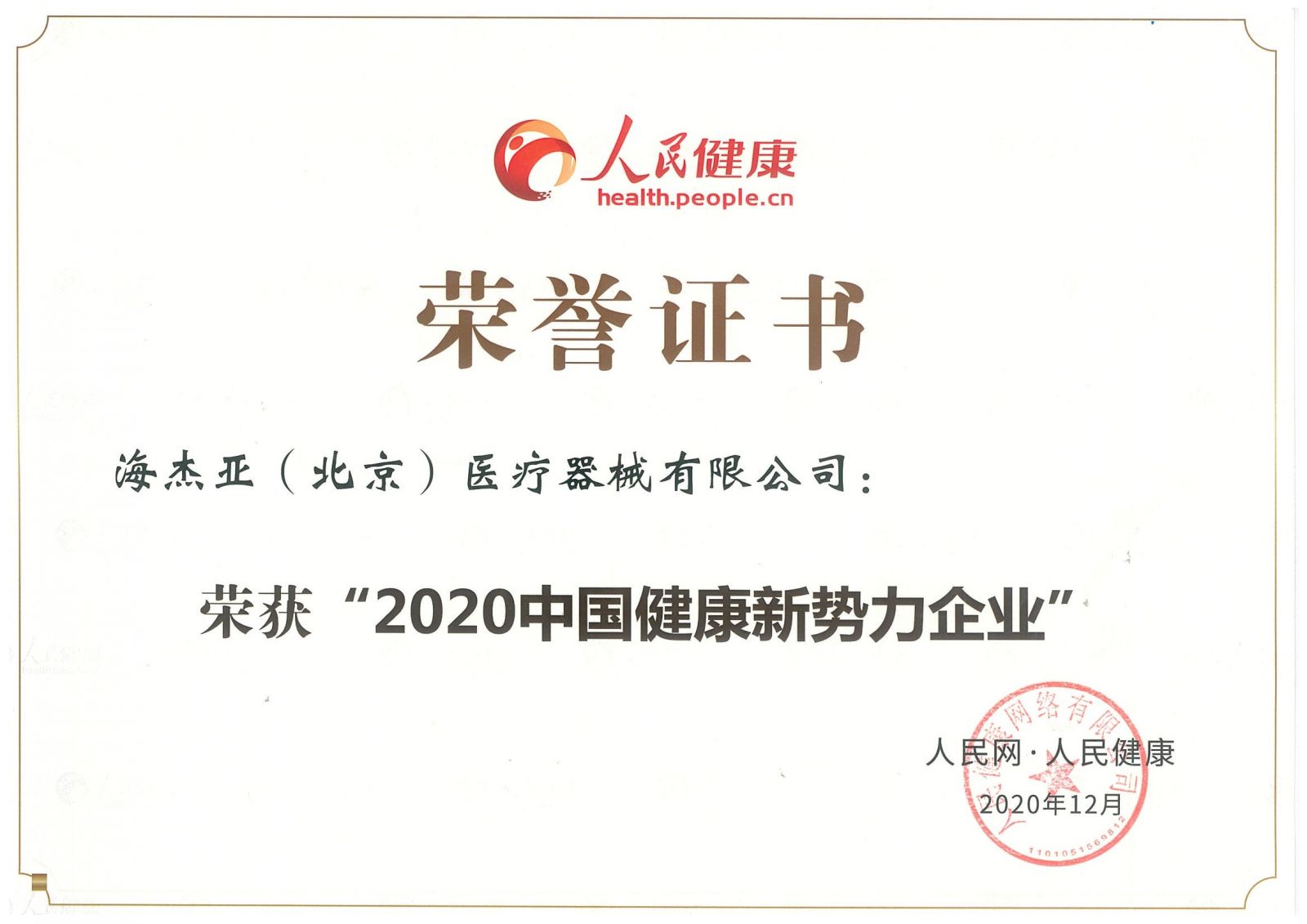 會議公布了2020中國健康新勢力企業(yè)征集活動結(jié)果,海杰亞榮獲“2020中國健康新勢力企業(yè)”。